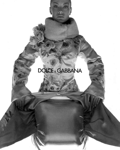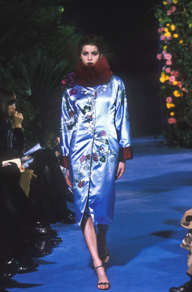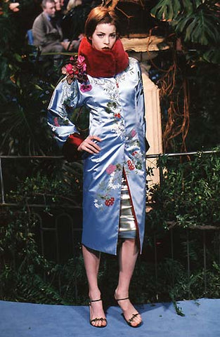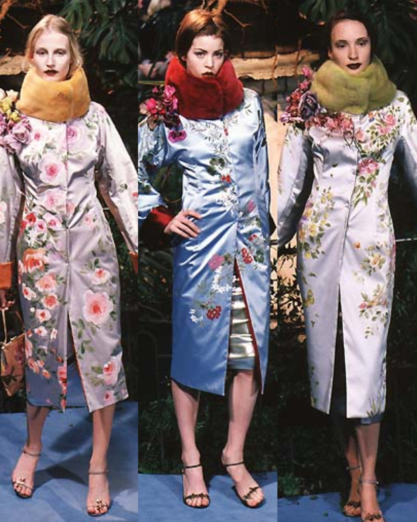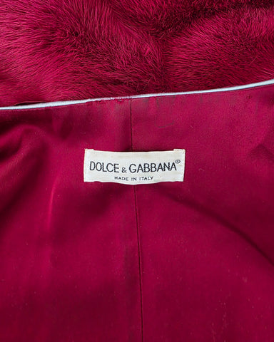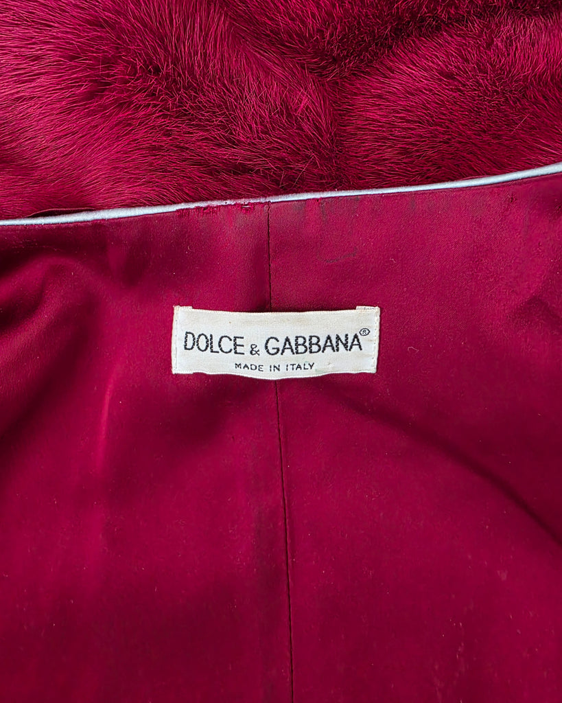 Dolce and Gabbana hand-painted silk jacket with burgandy mink fur collar from the FW 1998 collection.