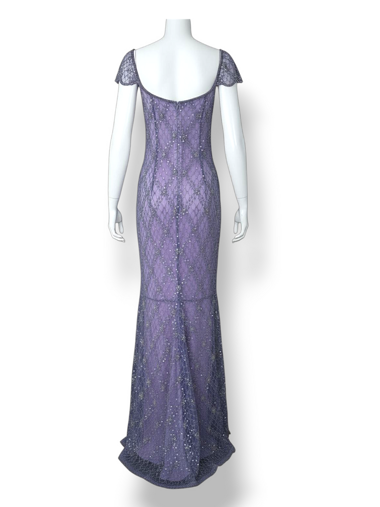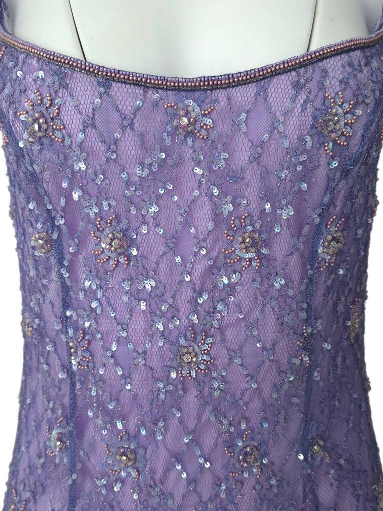 The most spectacular lilac embellished lace gown from the Escada SS 2001 collection. As seen on Adriana Lima on the runway in a different colourway.