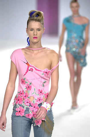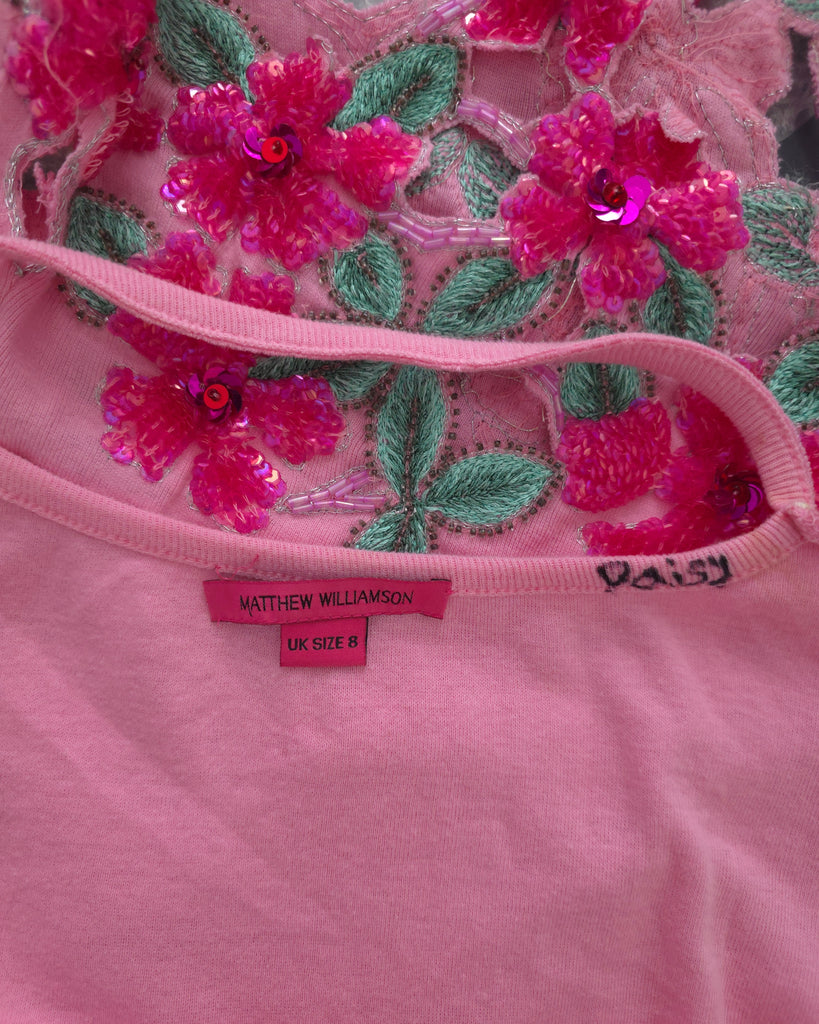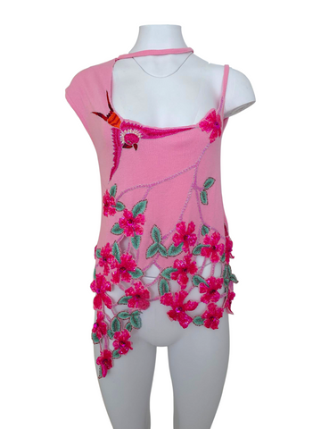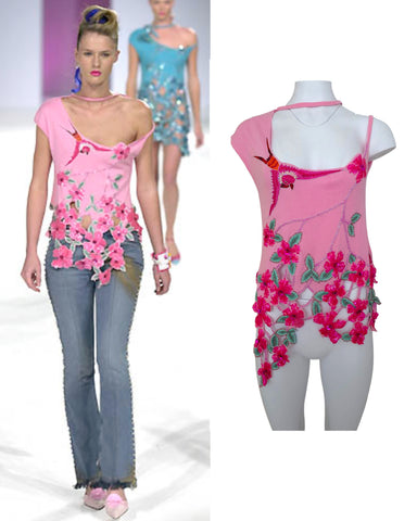 A beautifully embellished cut out pink top as seen on the runway for the Matthew Williamson SS 2001 collection.