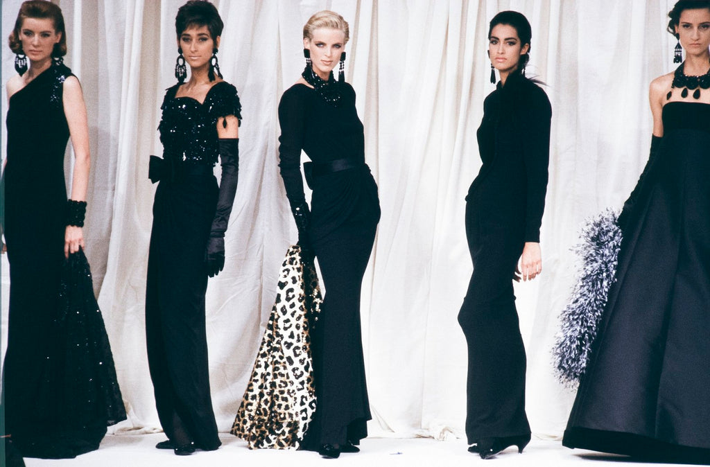 The black decorative stones were a prominent feature of the Valentino FW 1990 couture collection.