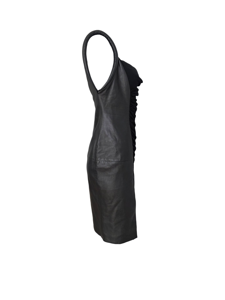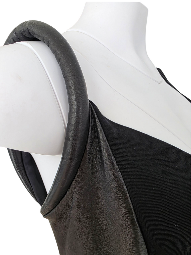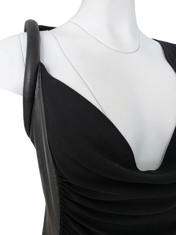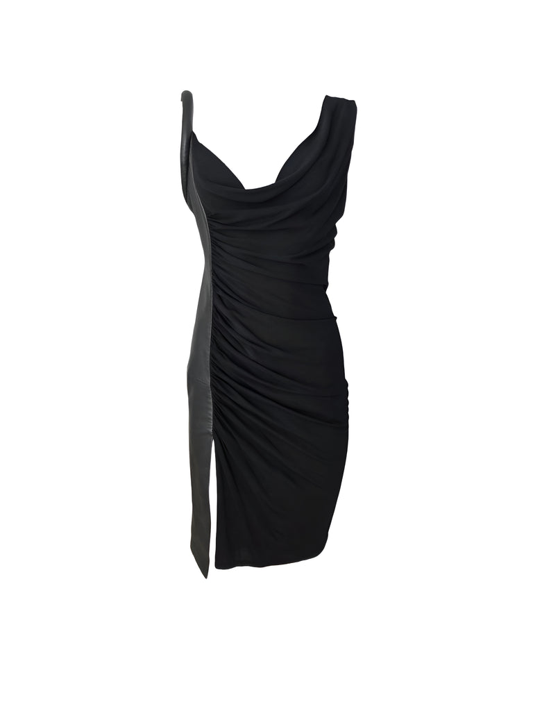 ▪ Gianni Versace asymmetric mid-length evening dress ▪ Black leather